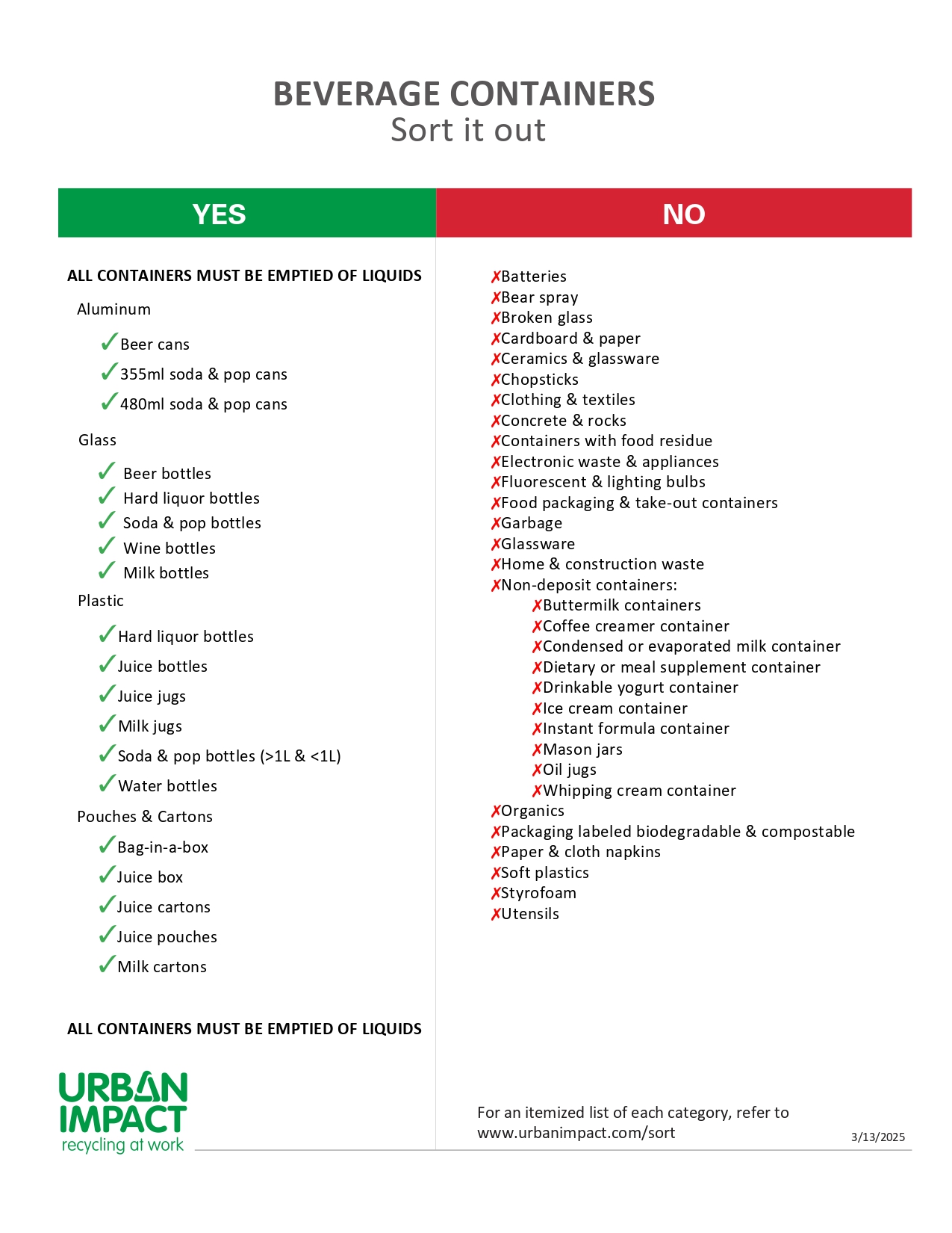 Urban Impact will ensure our Beverage Recycling Container Program fits needs. We will ensure bin are the right size, your bins are cleaned after each service and signage, to properly sort items, is easy to follow.